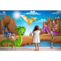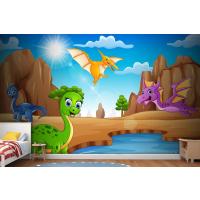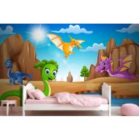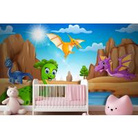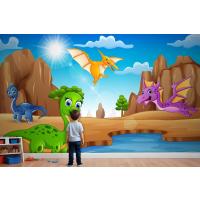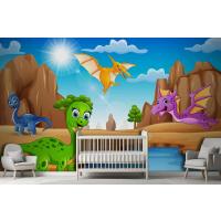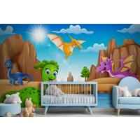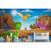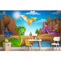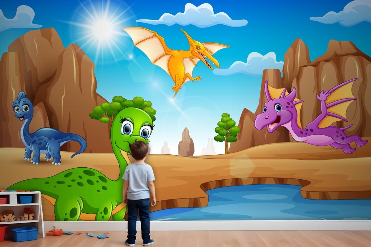 Çölde Yaşayan Karikatür Mutlu Dinozorlar Çocuk Odası Duvar Kağıdı