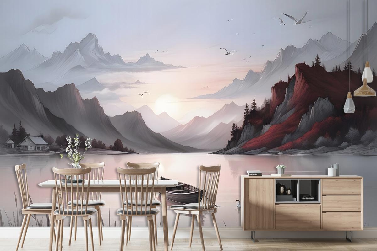 Dağlar Ile Doğa Manzarası Duvar Kağıdı