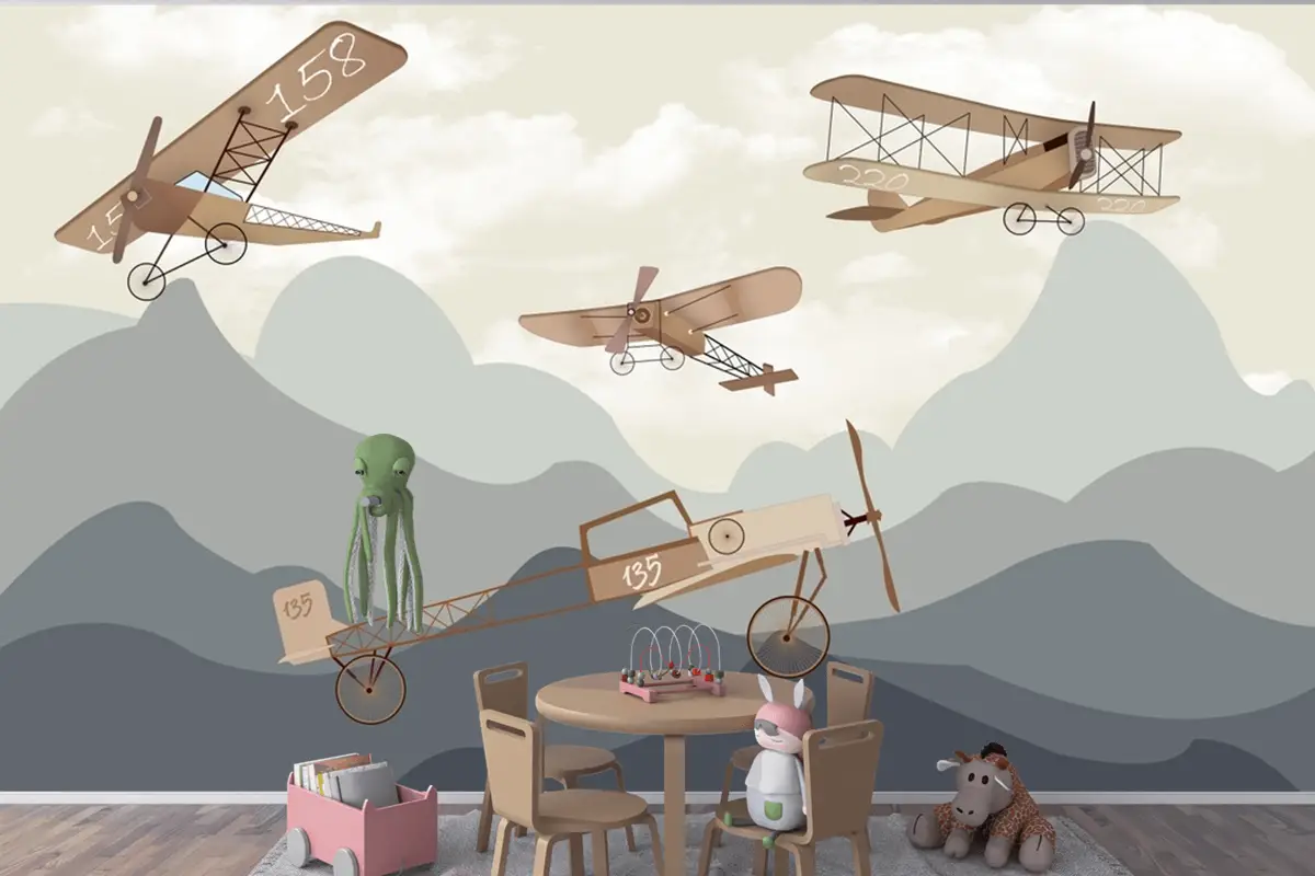 Dağlar Uçaklar Manzara Çocuk Odası Duvar Kağıdı