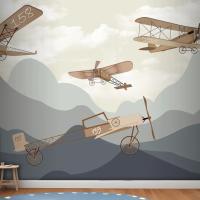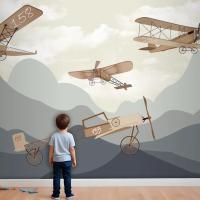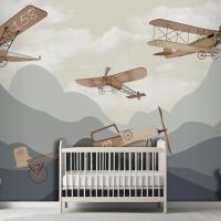 Dağlar Uçaklar Manzara Çocuk Odası Duvar Kağıdı