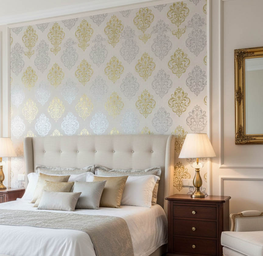 Damask Desen Gold Gümüş Duvar Kağıdı 13912