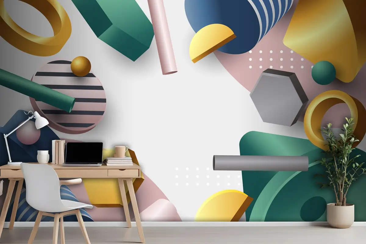 Degrade 3D Geometrik Ofis Duvar Kağıdı