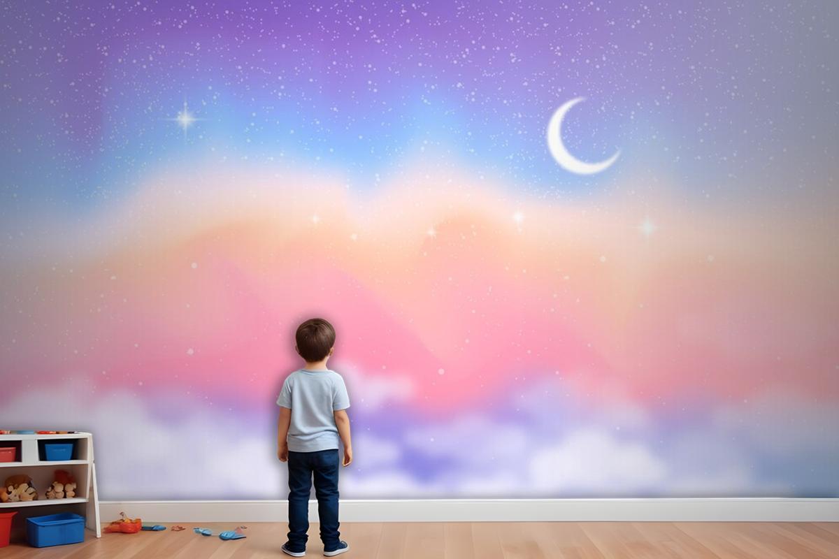 Degrade Pastel Gökyüzü Arka Plan Çocuklar Çocuk Odası Duvar Kağıdı
