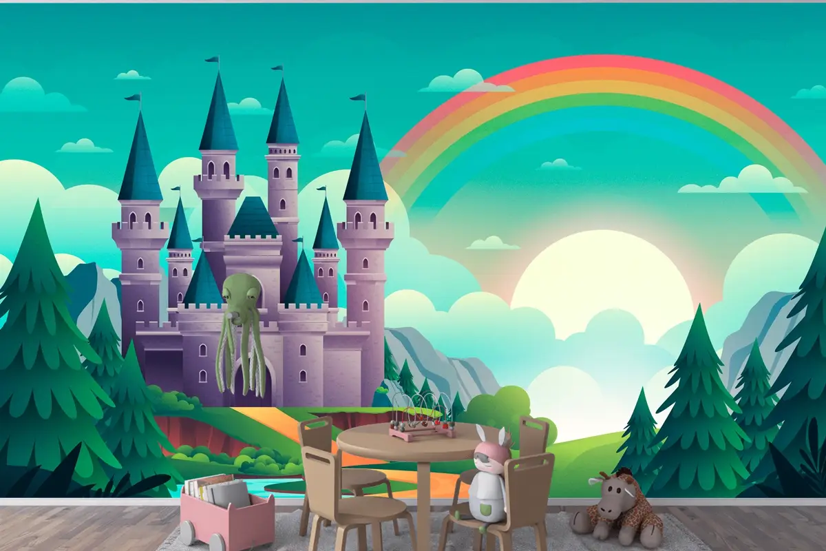 Degrade Peri Masalı Arka Plan Kids Boy Çocuk Odası Duvar Kağıdı
