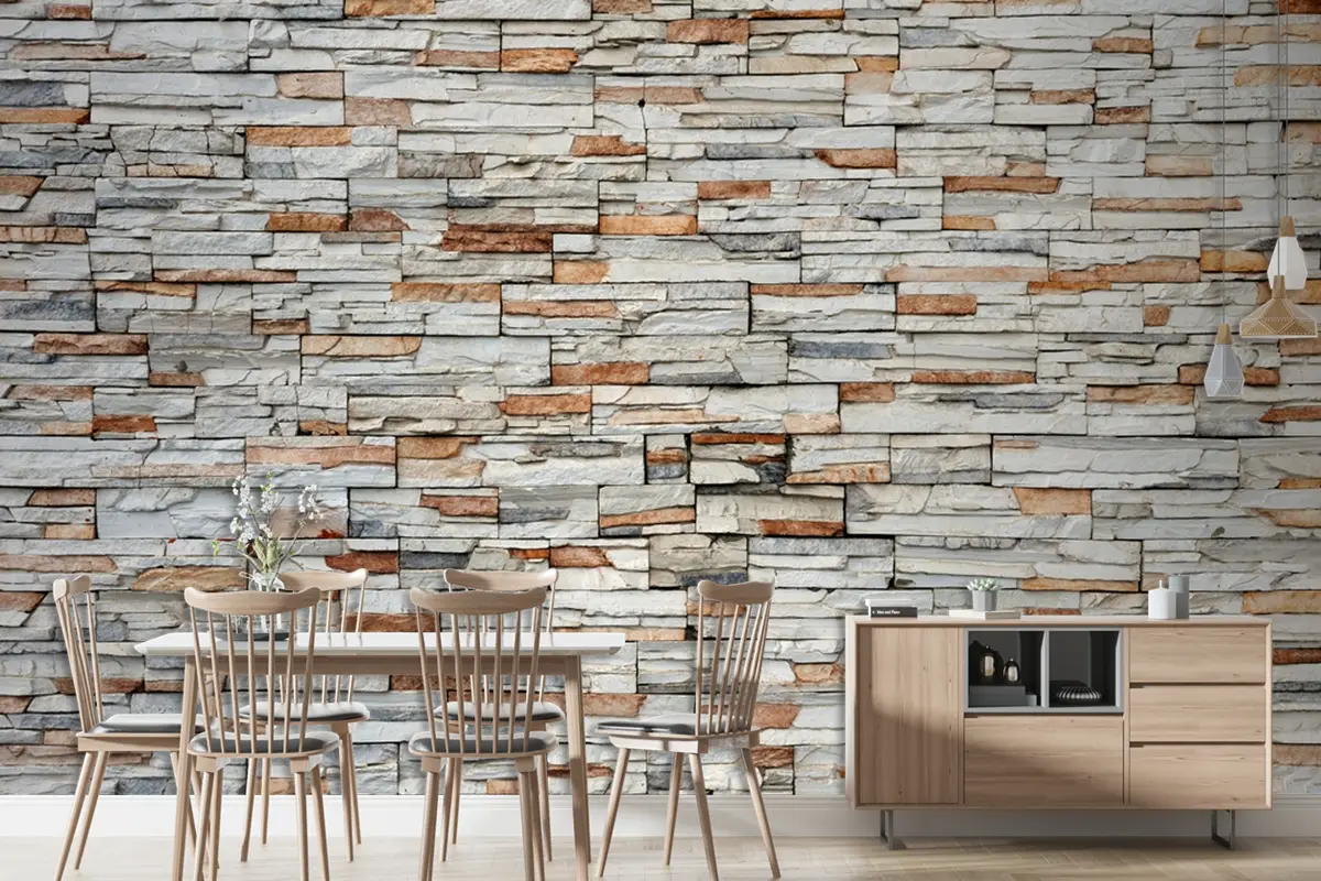 Dekoratif Çok Renkli Arduvaz Taşı Duvar Yüzeyi Duvar Kağıdı