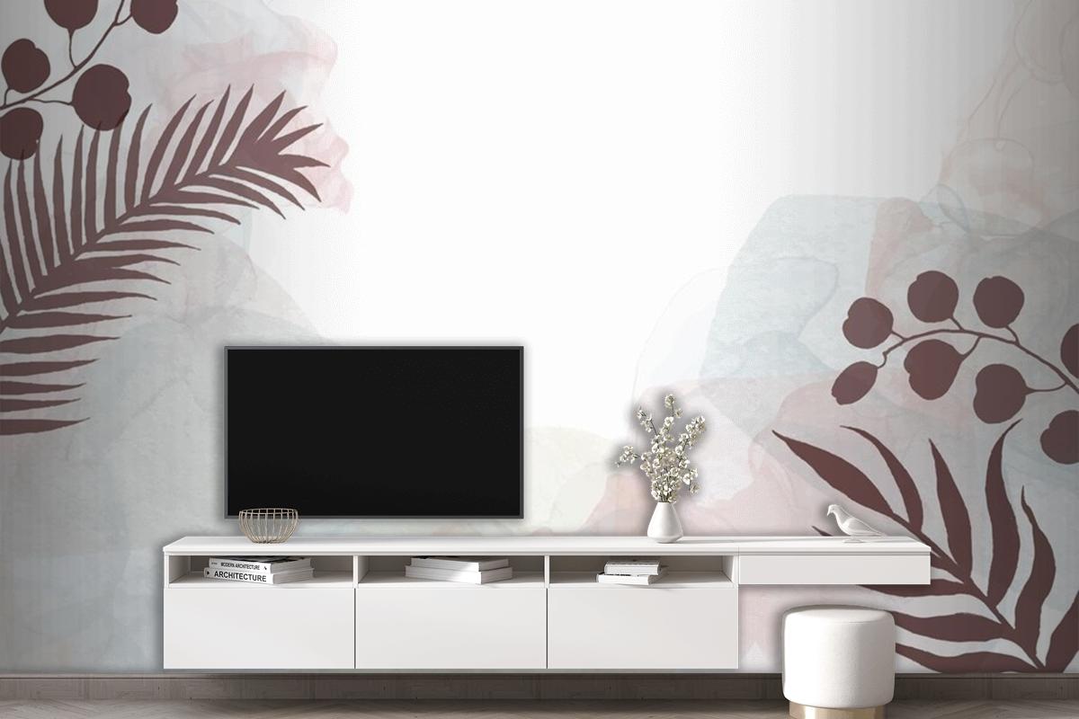 Dekoratif Suluboya El Çiçek Tasarımlı Oturma Odası Duvar Kağıdı Boyalı