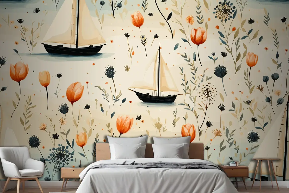 Deniz Hayvanları Bir Deniz Feneri Ve Kabuklu Bir Tekne Denizyıldızı Yatak Odası Duvar Kağıdı