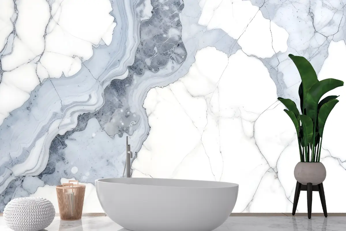Derin Mavi Bulutlu Mermer Banyo Duvar Kağıdı