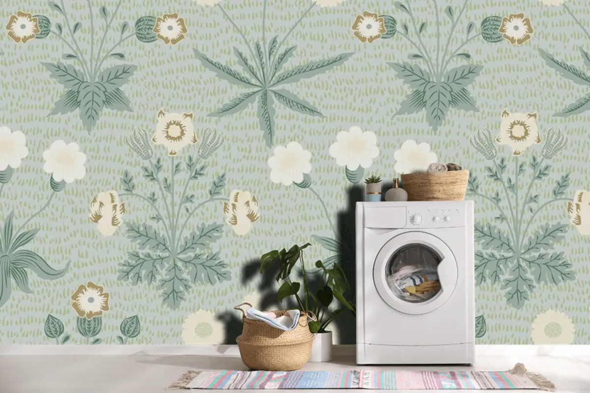 Desenli Çiçekli Çamaşır Odası Duvar Kağıdı