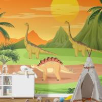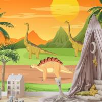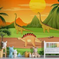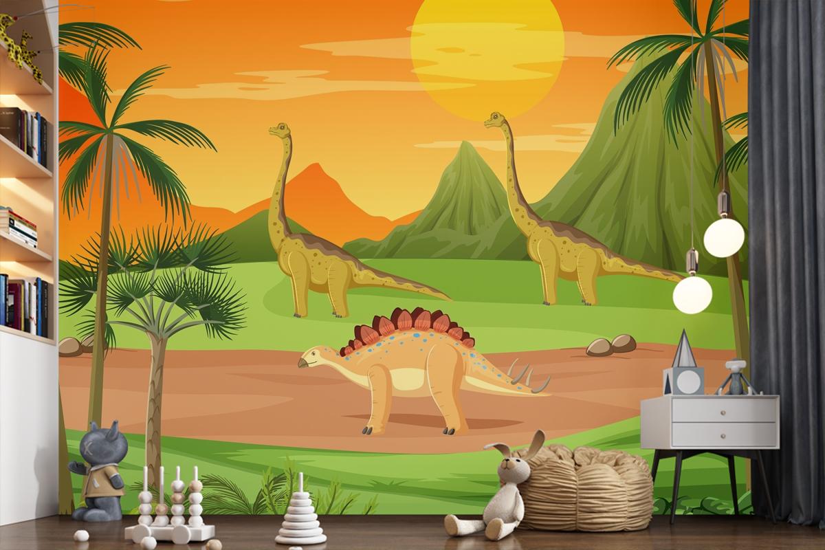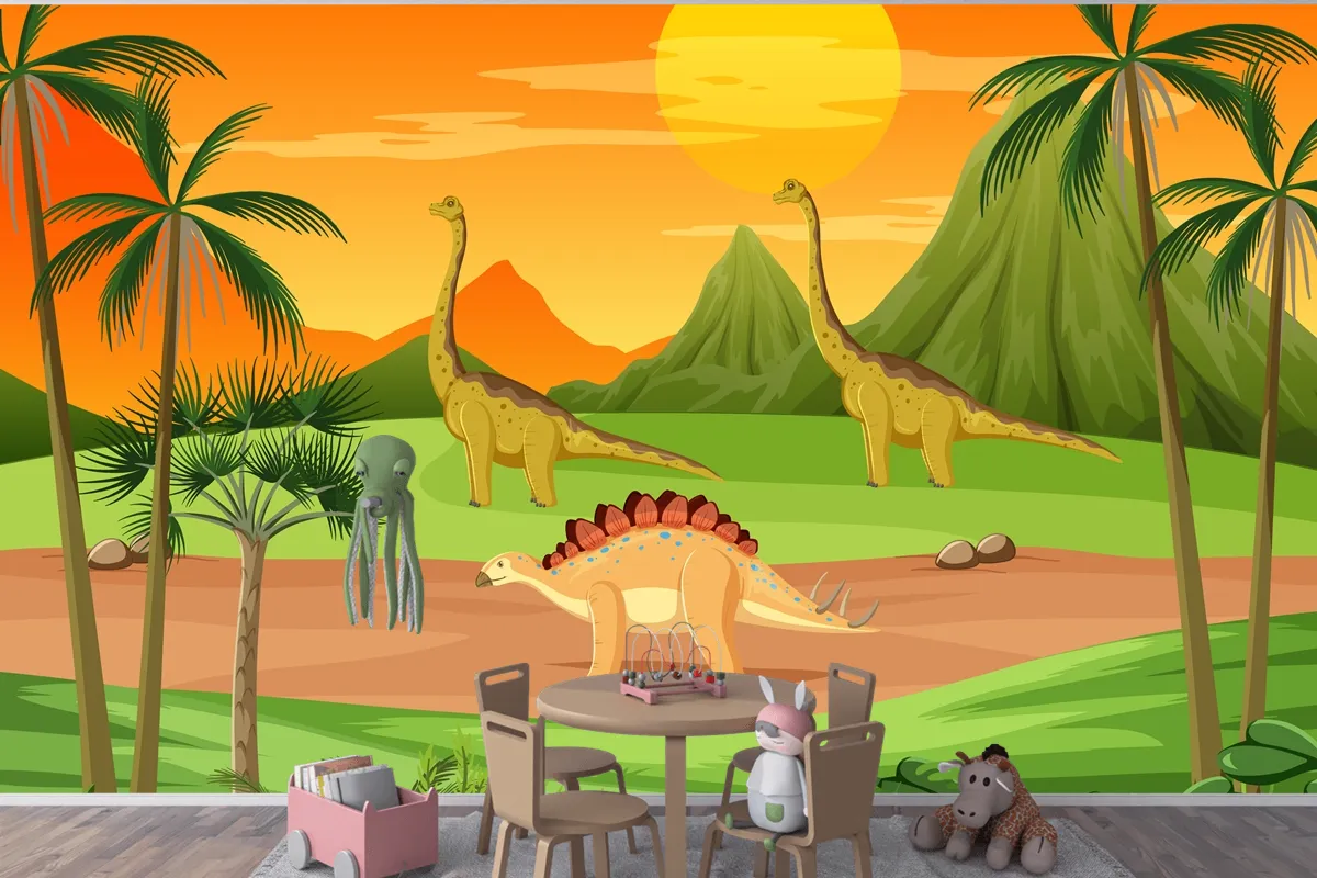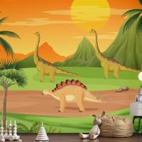 Dinozor Karikatür Çocuk Odası Duvar Kağıdı Ile Tarih Öncesi Orman