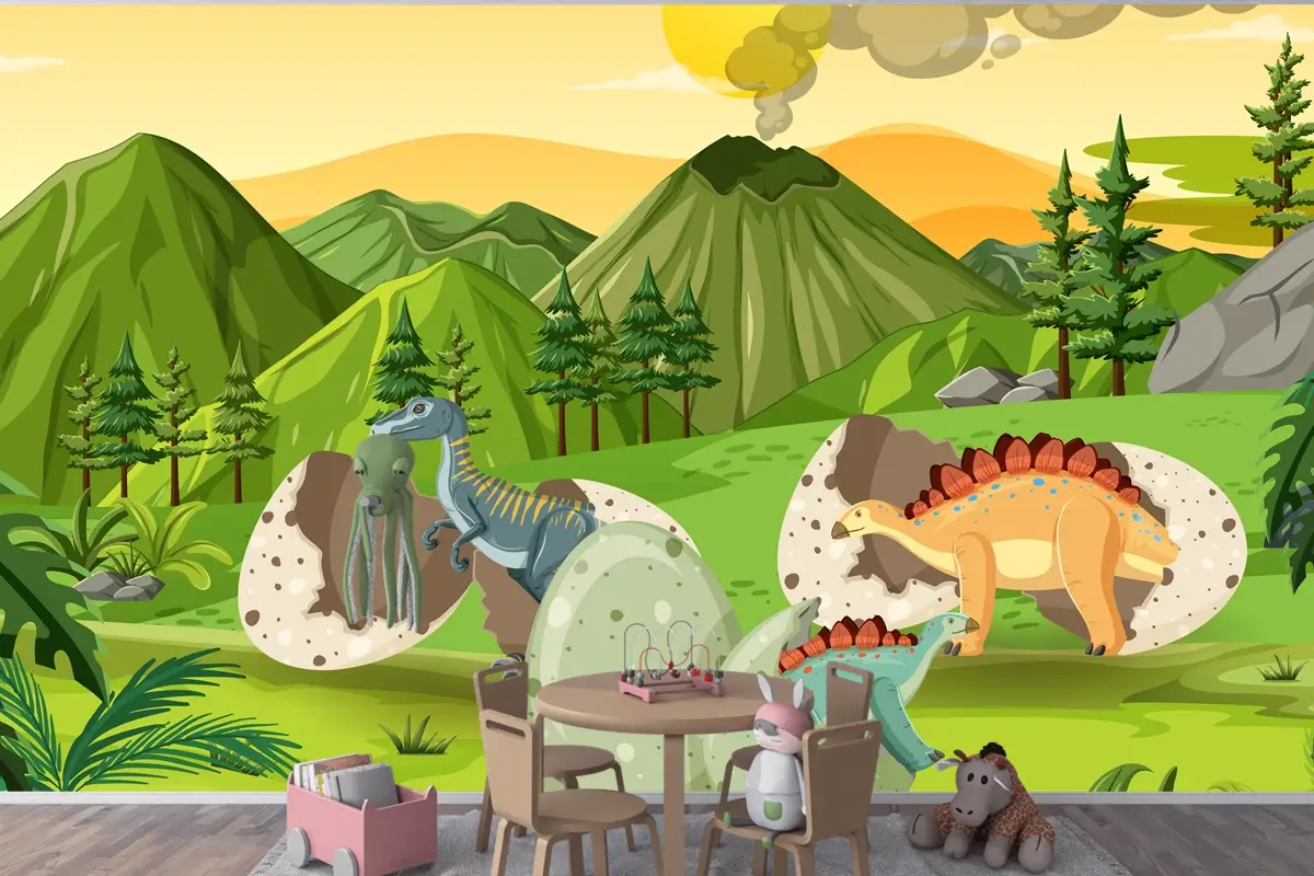 Dinozor Karikatür Çocuk Odası Duvar Kağıdı Ile Tarih Öncesi Orman