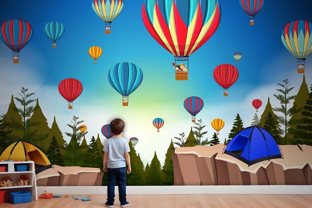 Doğada Sıcak Hava Balonu Manzara Çocuk Odası Duvar Kağıdı