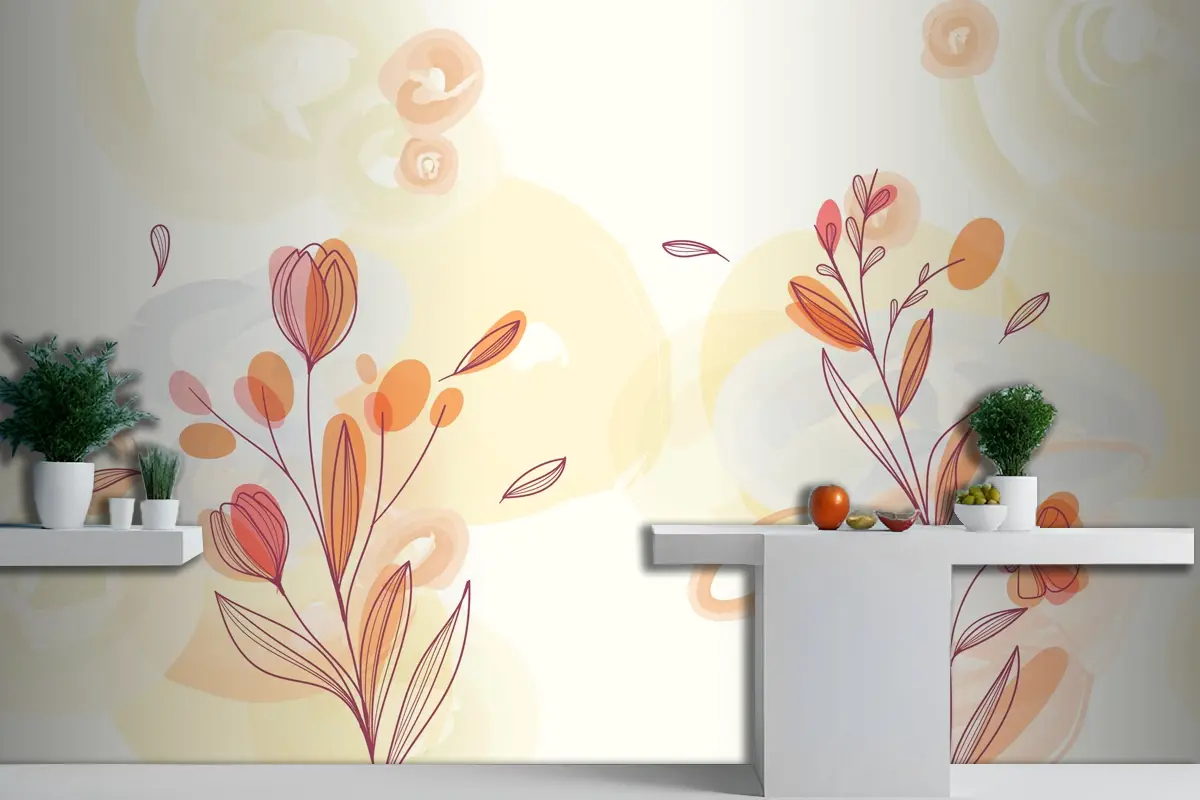 Doğal El Boyalı Çiçek Mutfak Duvar Kağıdı