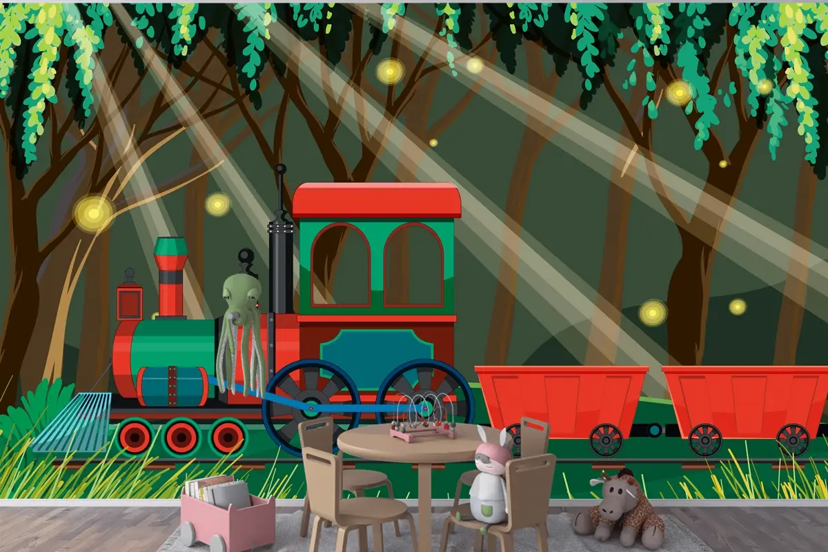 Doğal Sahne Çocuk Odası Duvar Kağıdı Ile Tren