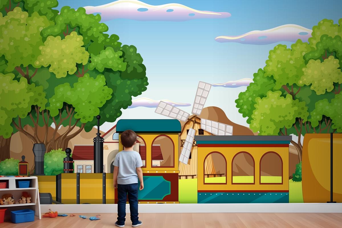 Doğal Sahneli Tren Çocuk Odası Duvar Kağıdı