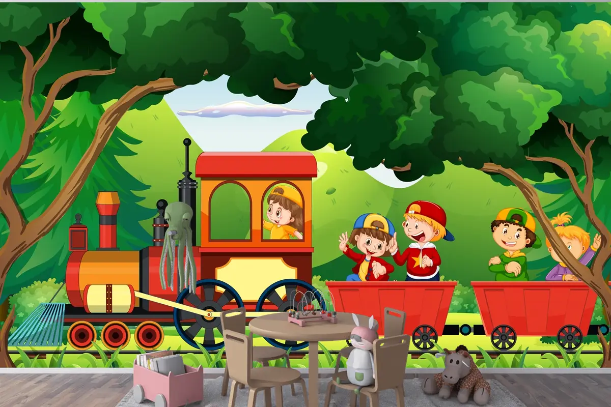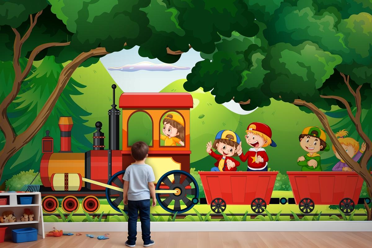 Doğal Sahneli Trendeki Çocuklar Çocuk Odası Duvar Kağıdı