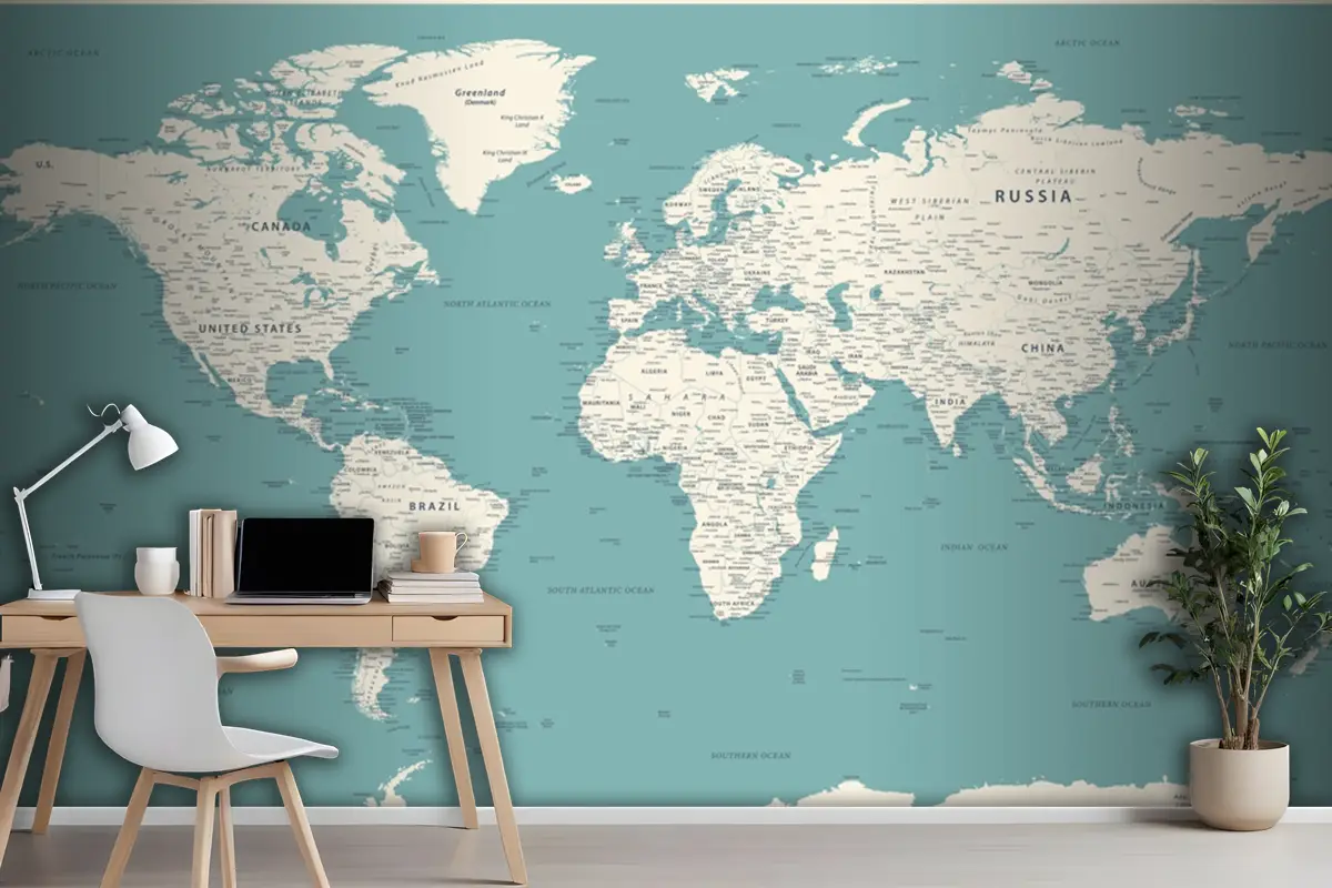 Dünya Haritası Vintage Siyasi Detaylı Duvar Kağıdı