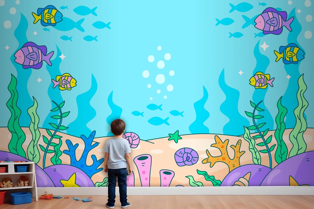 Dünya Okyanuslar Günü Elle Çizilmiş Arka Plan Çocuk Odası Duvar Kağıdı