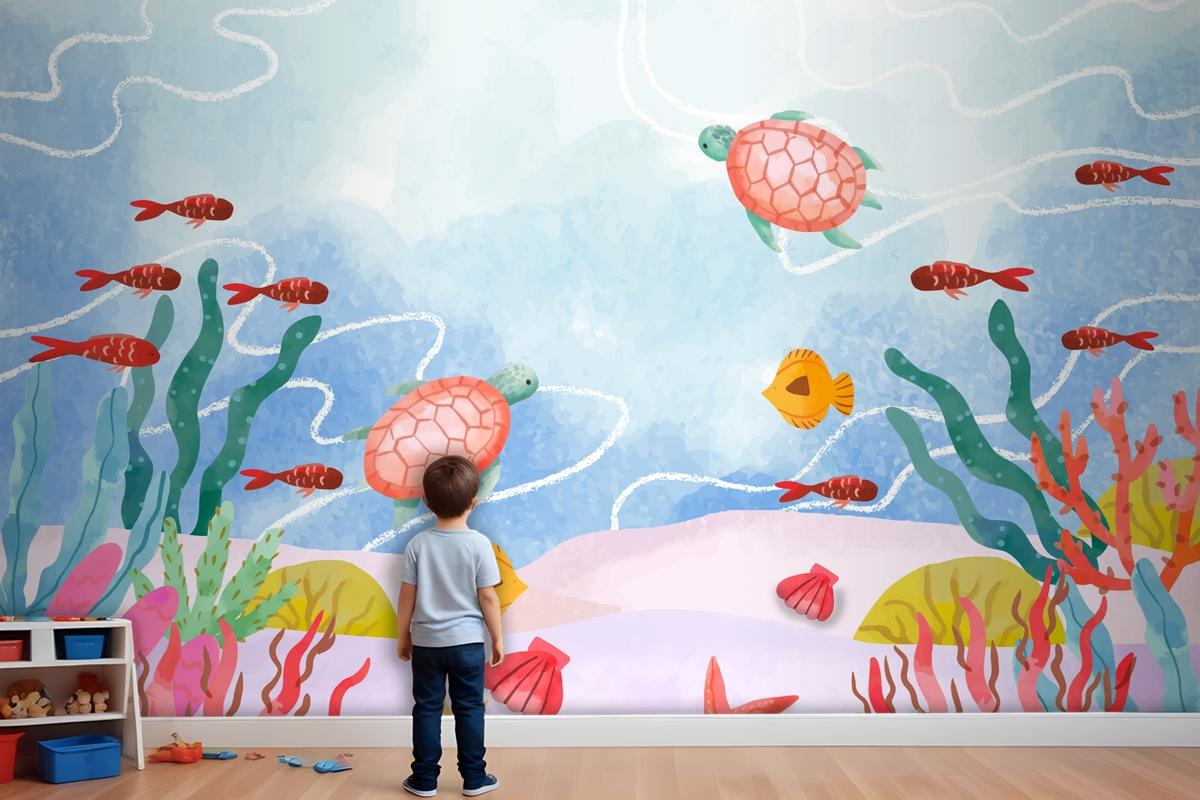 Dünya Okyanuslar Günü Kutlaması İçin Suluboya Arka Plan Çocuk Odası Duvar Kağıdı