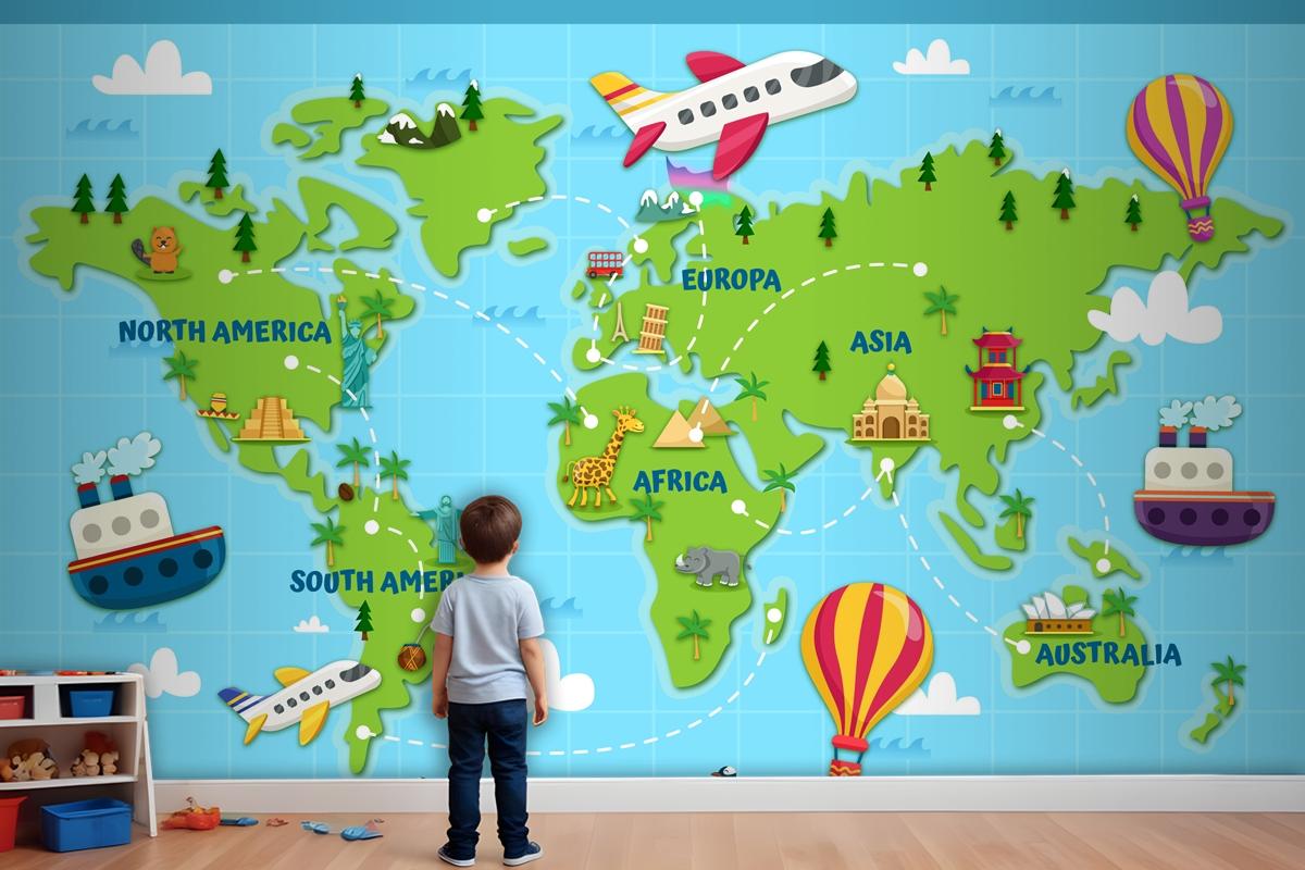 Dünyayı Seyahat Dünya Haritası Çocuk Odası Duvar Kağıdı