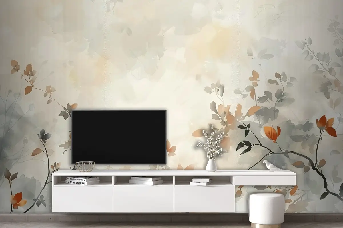 Duvara Büyüleyici Suluboya Tarzında Boyanmış Pastel Çiçekler Tv Arkası Duvar Kağıdı