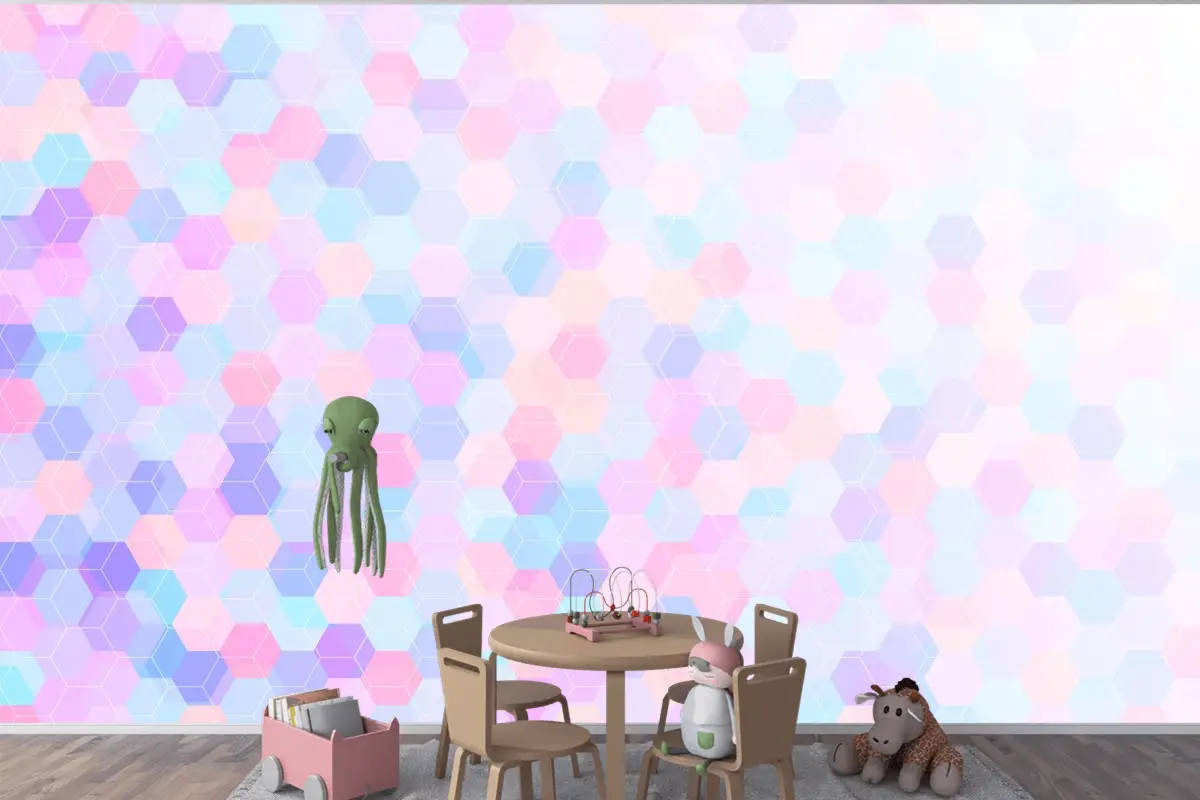Düz Çokgen Arka Plan Çocuk Odası Duvar Kağıdı