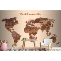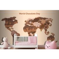 Düz Dünya Haritası Çikolata Günü Çocuk Odası Duvar Kağıdı