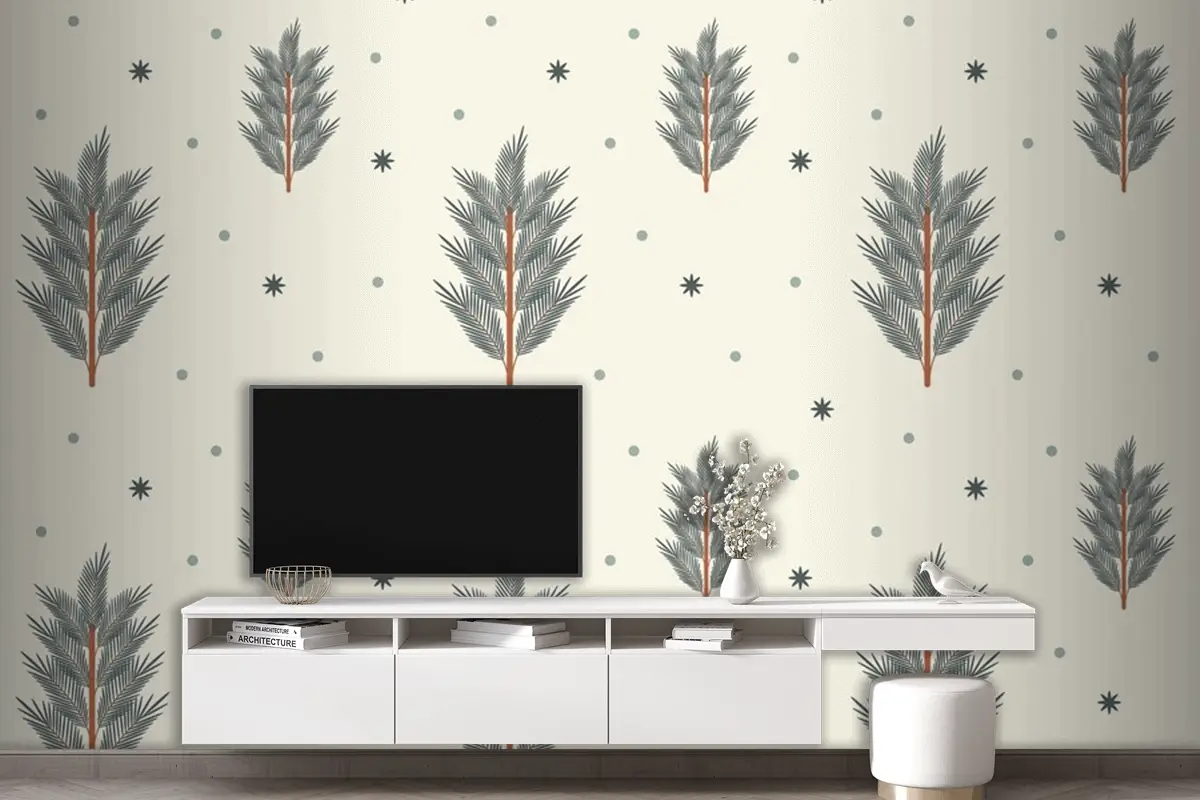 Düz Noel Ağacı Dikişsiz Desen Oturma Odası Duvar Kağıdı