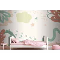 Düz Tasarım Bebek Duş Şablonu Çocuk Odası Duvar Kağıdı