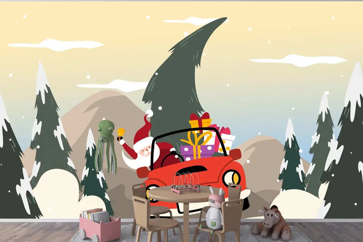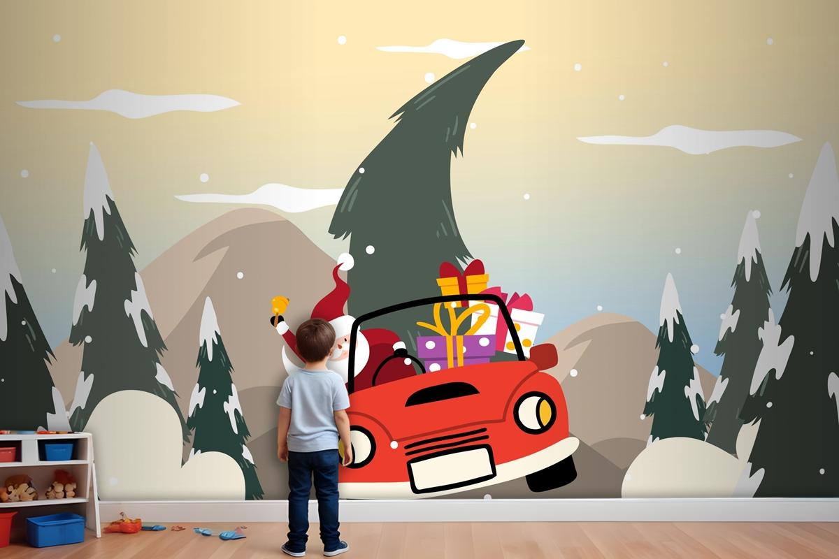 Düz Tasarım Çocuk Odası Duvar Kağıdı Duvarında Noel Arkaplanı