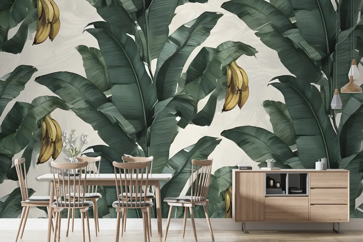 Egzotik Muz Yaprağı Desenli Duvar Kağıdı