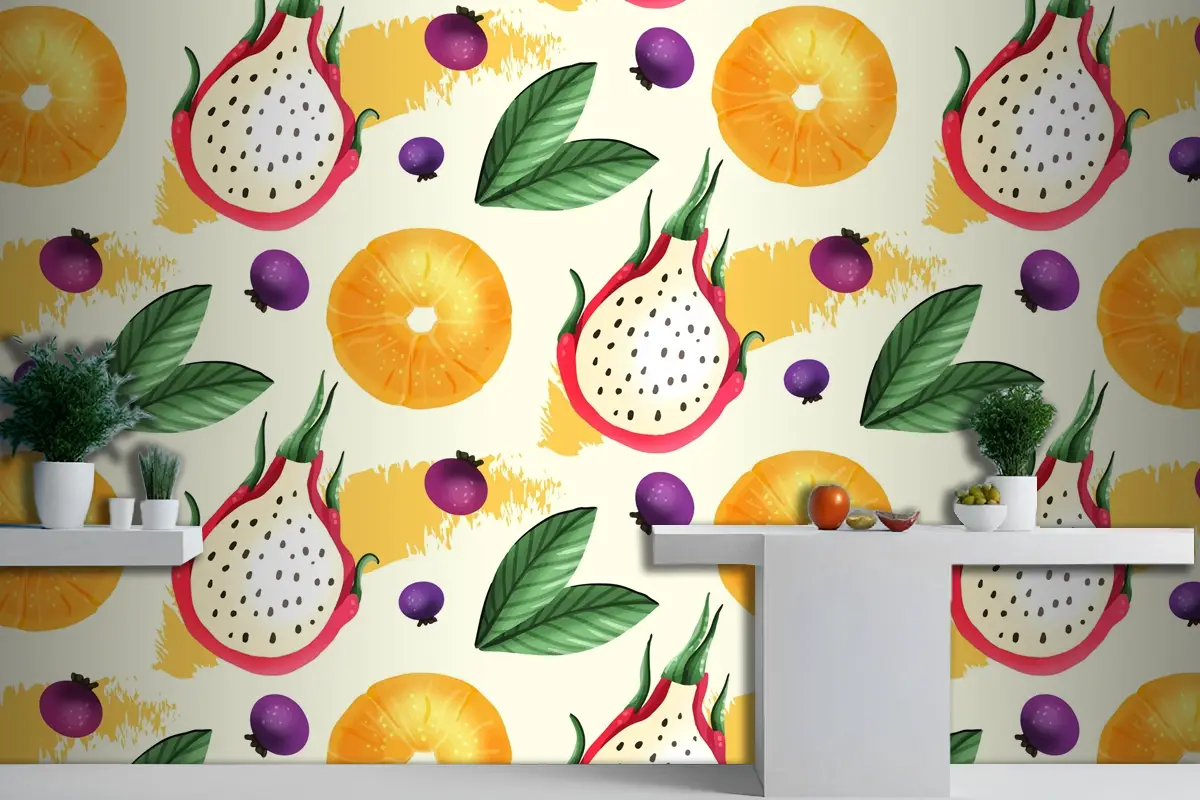 Ejderha Meyveli Meyve Deseni Mutfak Duvar Kağıdı