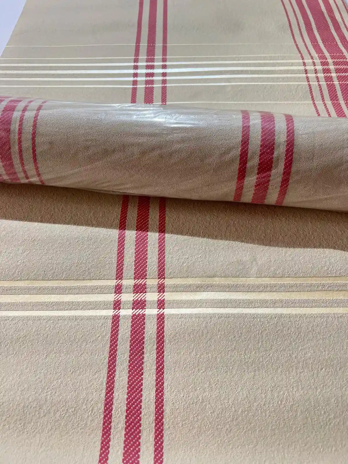 Ekose Krem Kırmızı Desen Ucuz Duvar Kağıdı 22V