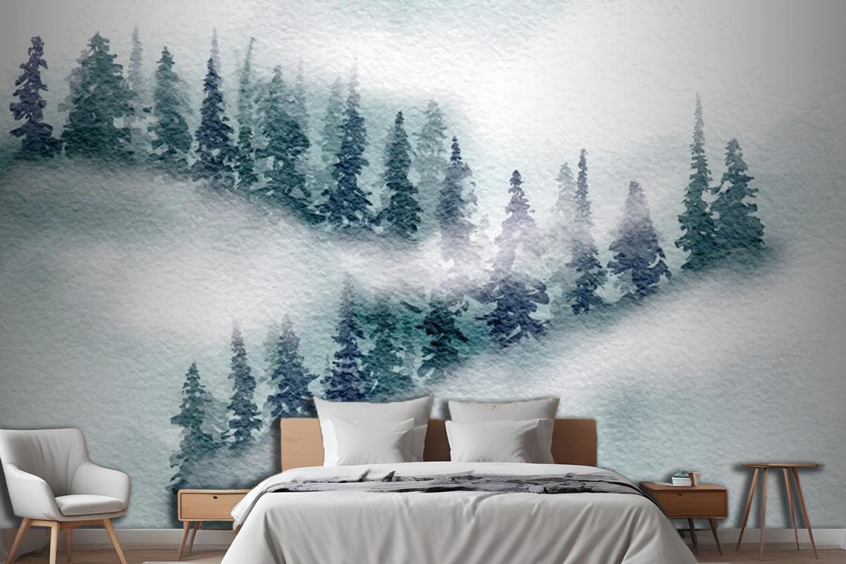 El Boyalı Japon Temalı Suluboya Manzara Yatak Odası Duvar Kağıdı