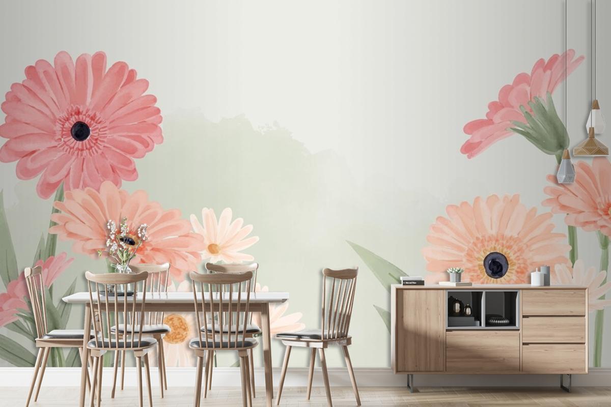 • El Boyalı Suluboya Çiçek Arka Plan Duvar Kağıdı
