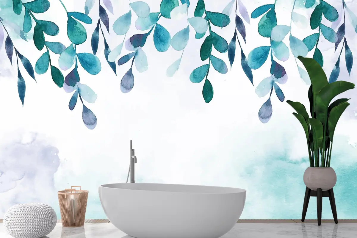 • Kendinden Yapışkanlı El Boyalı Suluboya Doğa Arka Plan Banyo Duvar Kağıdı
