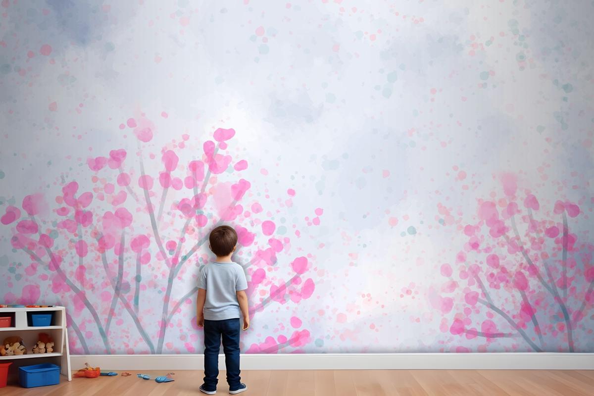 El Boyalı Suluboya Doğa Arka Plan Çocuk Odası Duvar Kağıdı