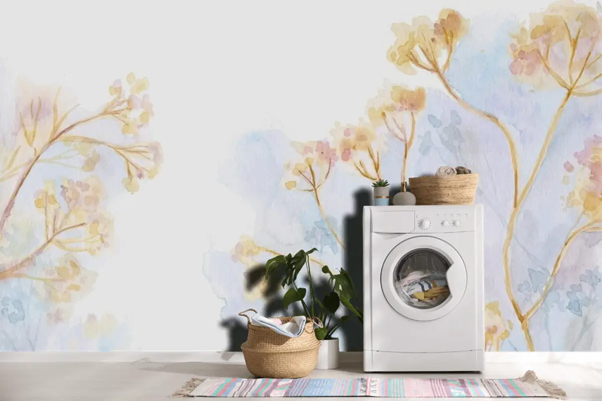 El Boyalı Suluboya Doğa Çamaşır Odası Duvar Kağıdı