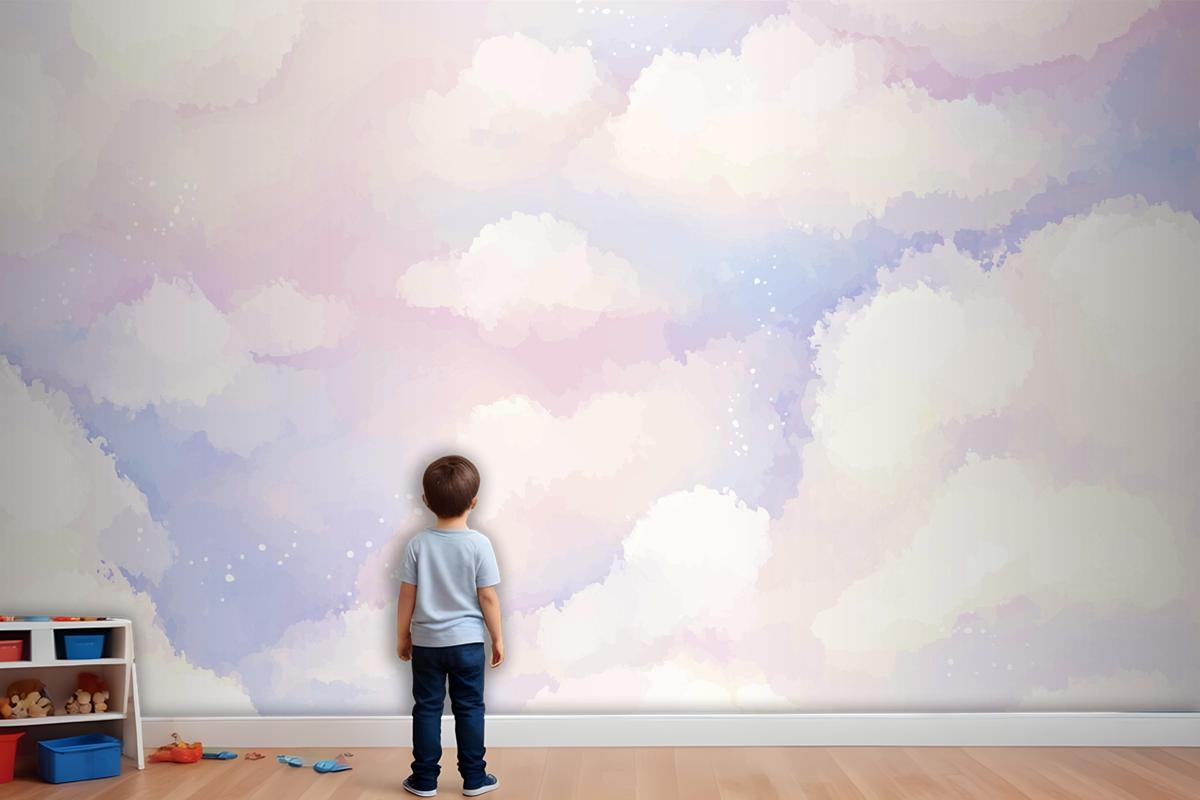 El Boyalı Suluboya Pastel Gökyüzü Arka Plan Çocuk Odası Duvar Kağıdı