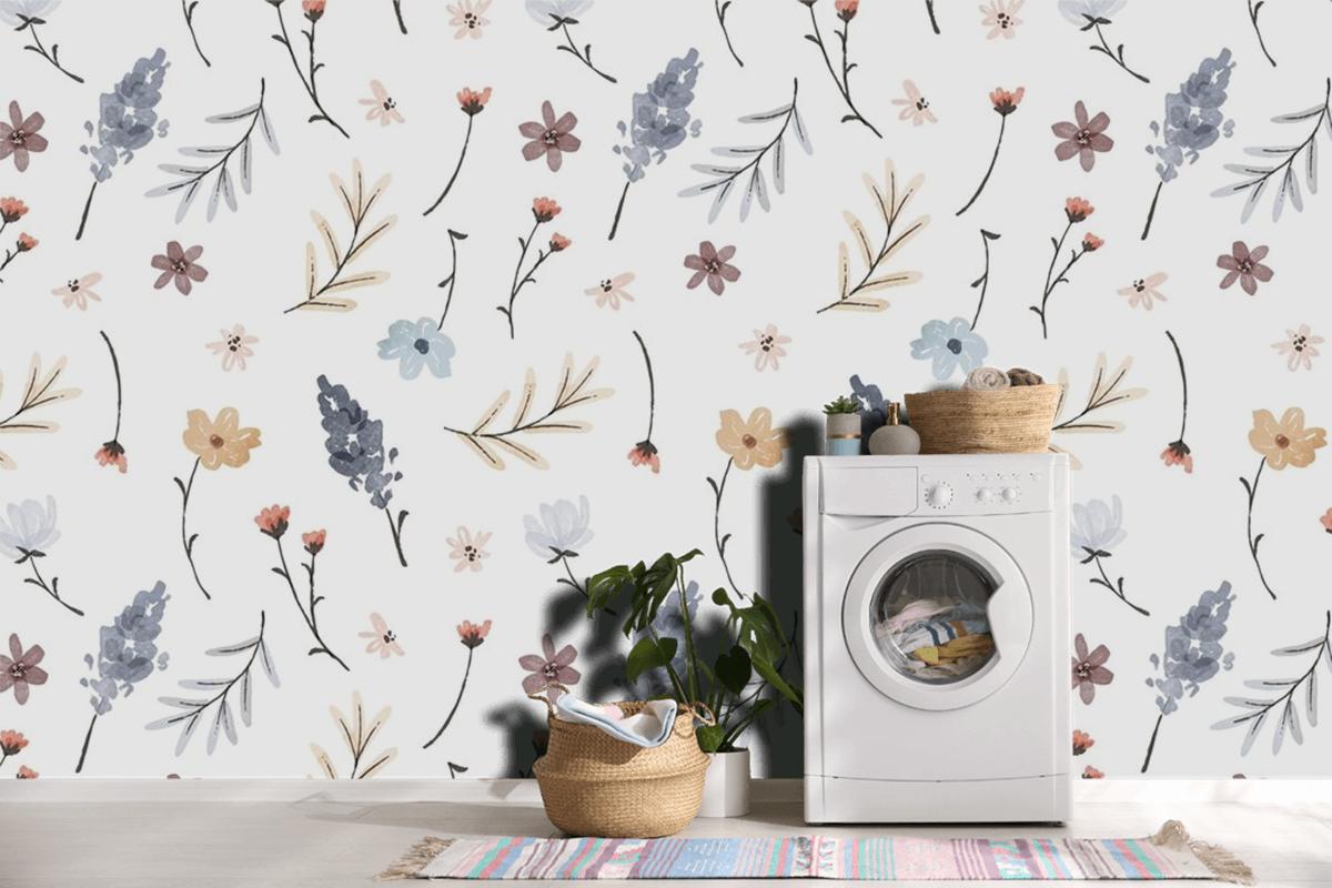 El Boyalı Suluboya Preslenmiş Çiçek Desenli Duvar Kağıdı