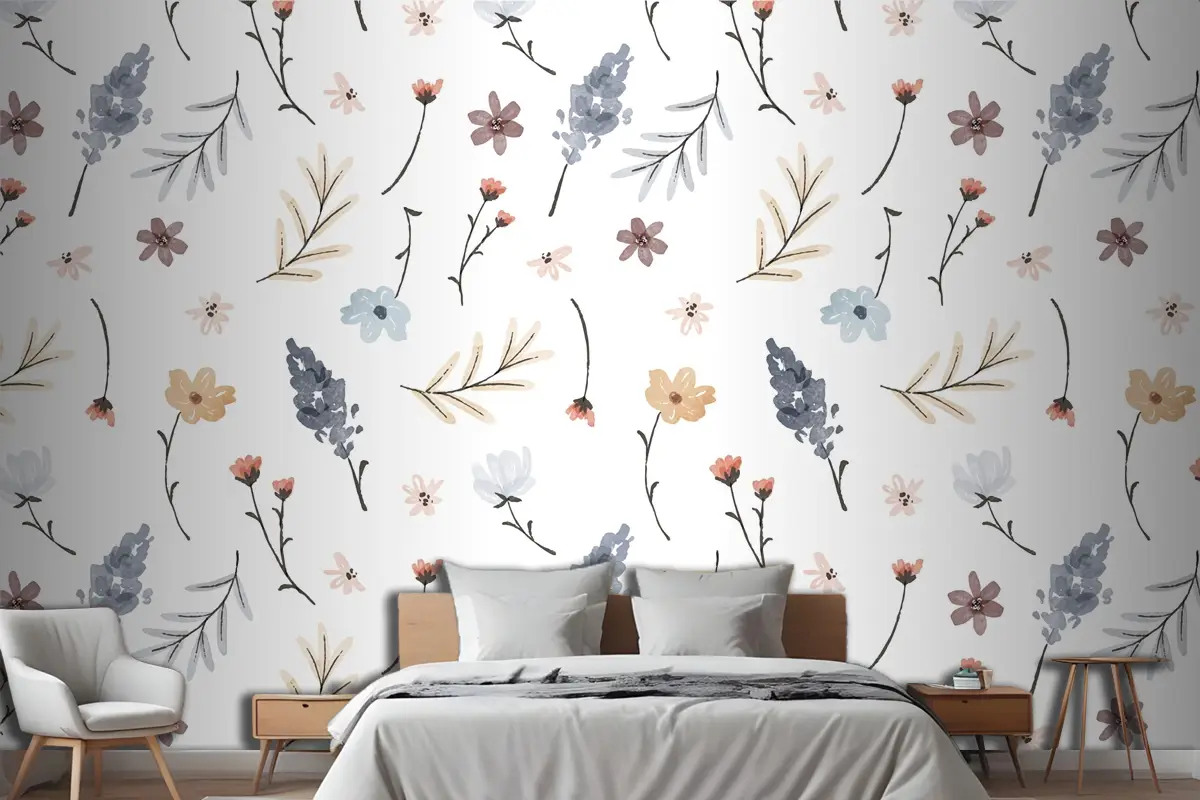 El Boyalı Suluboya Preslenmiş Çiçek Desenli Yatak Odası Duvar Kağıdı