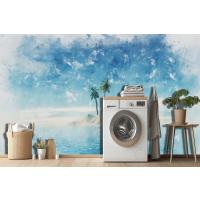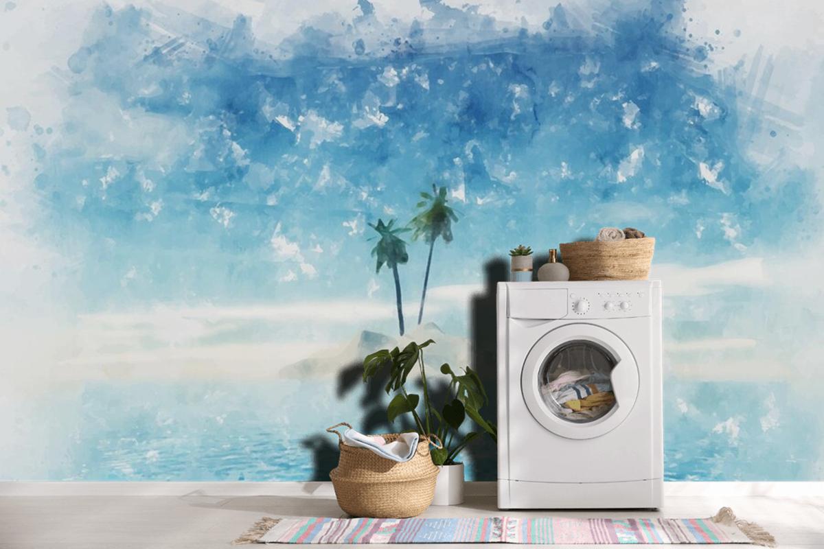 El Boyalı Suluboya Yaz Palmiye Ağacı Adası Duvar Kağıdı
