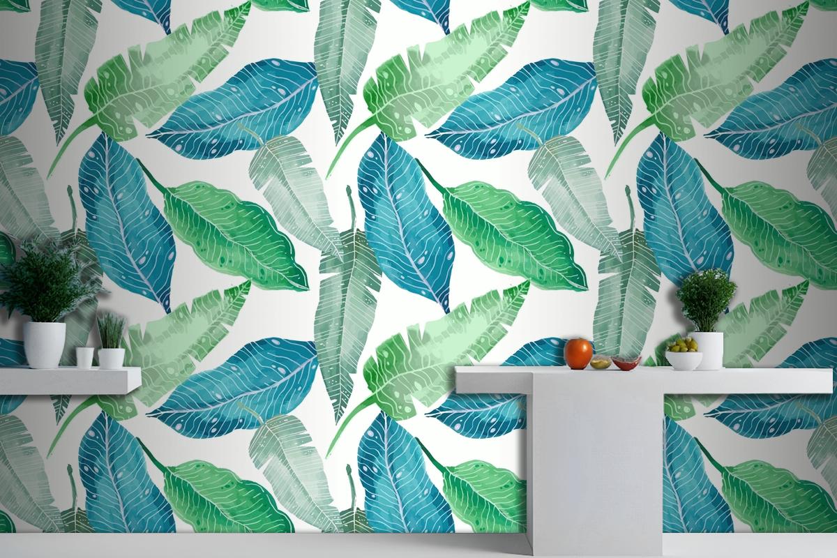 El Boyalı Yaz Tropikal Desenli Mutfak Duvar Kağıdı