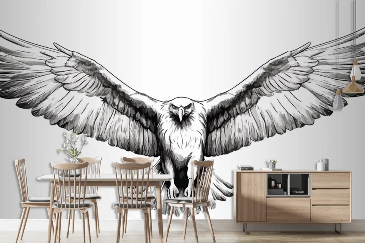 El Çizimi Uçan Kartal Gravür Duvar Kağıdı