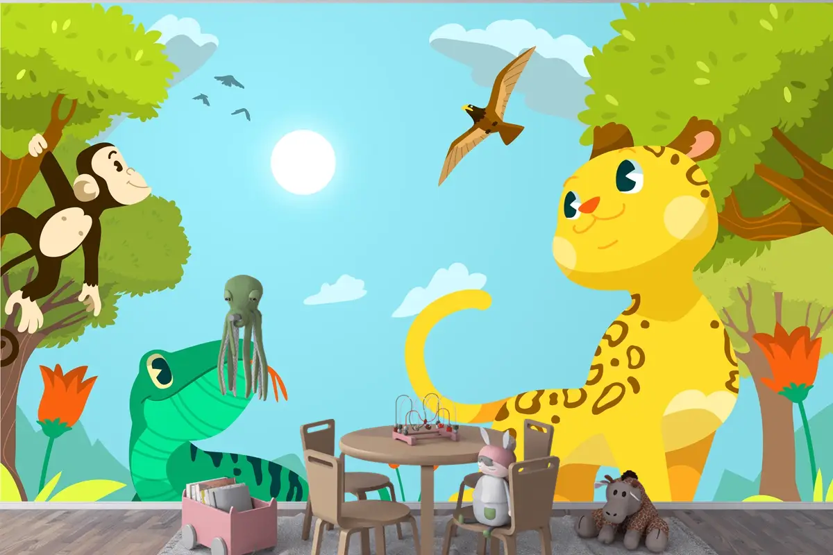 Elle Çizilmiş Biyoçeşitlilik Çocuk Odası Duvar Kağıdı