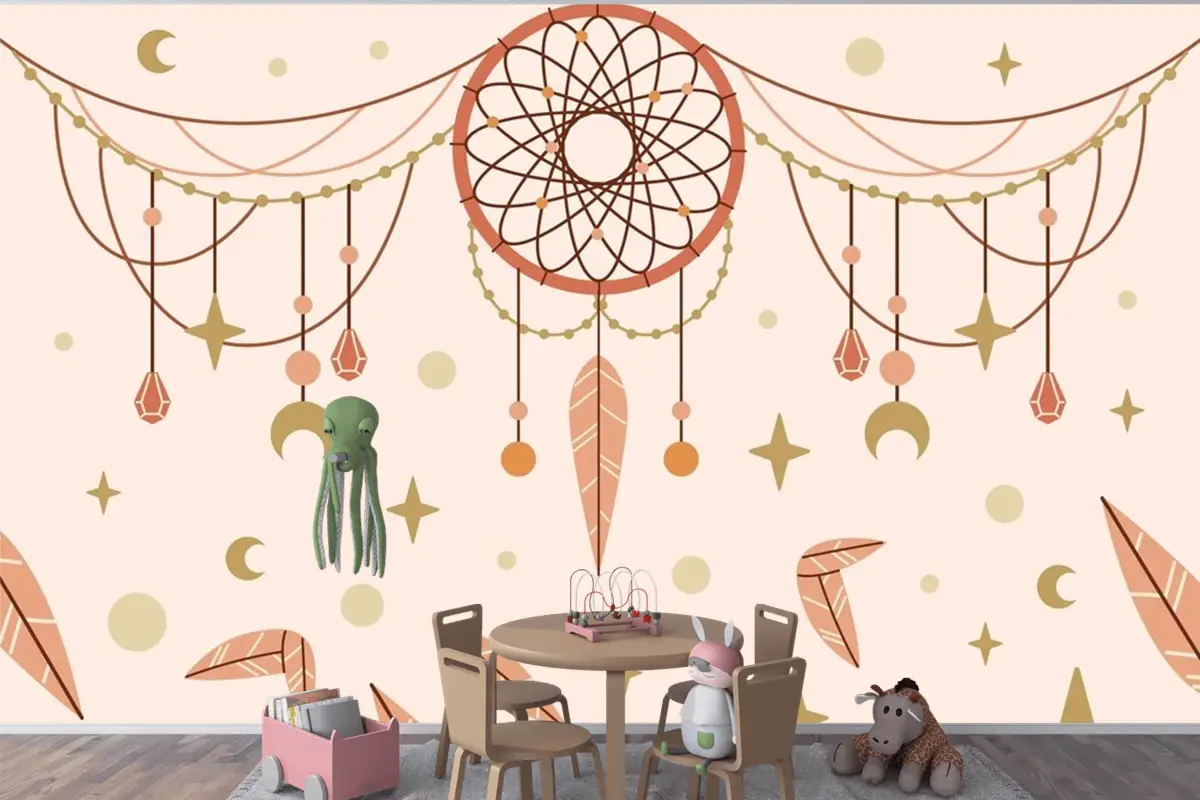 Elle Çizilmiş Boho Arka Plan Çocuk Odası Duvar Kağıdı