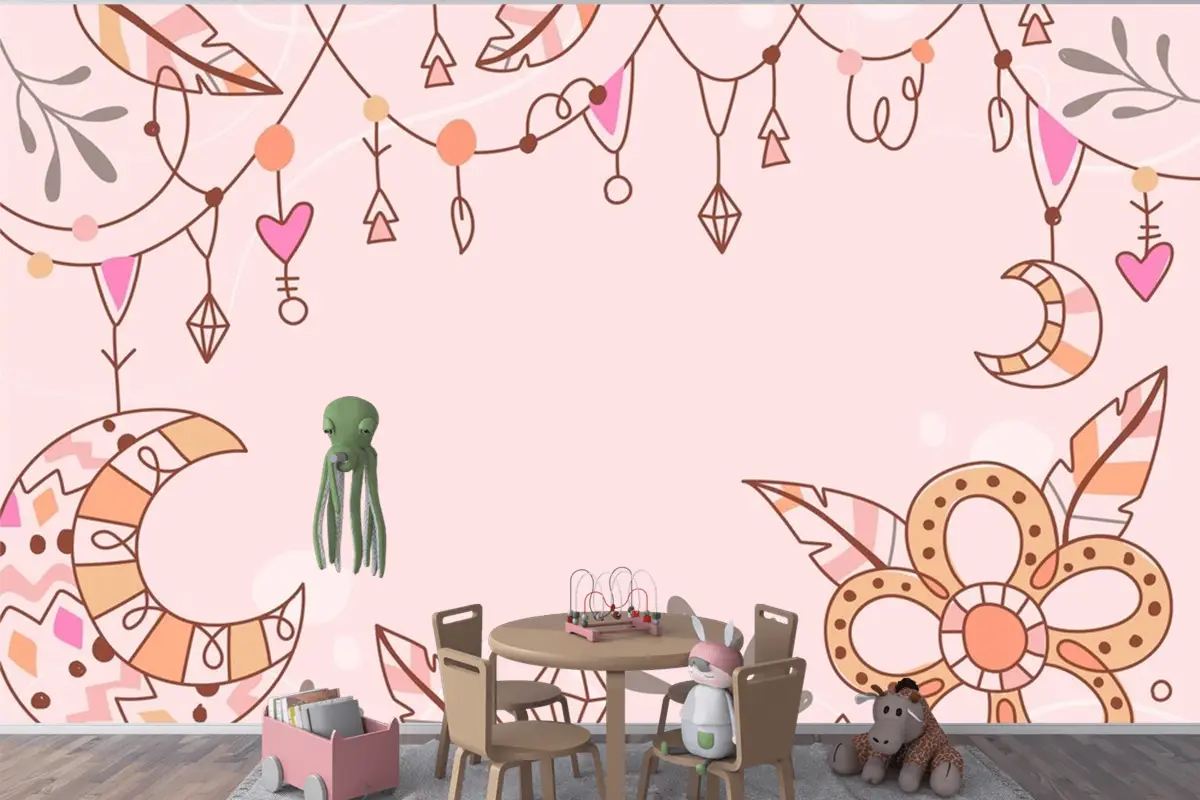 Elle Çizilmiş Boho Arka Plan Çocuk Odası Duvar Kağıdı