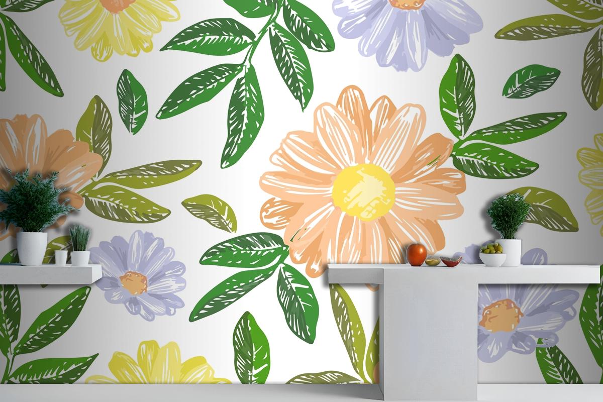 Elle Çizilmiş Çiçek Nakış Mutfak Duvar Kağıdı