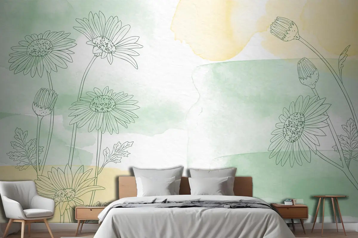 Elle Çizilmiş Çiçeklerle Boyalı Arka Plan Yatak Odası Duvar Kağıdı
