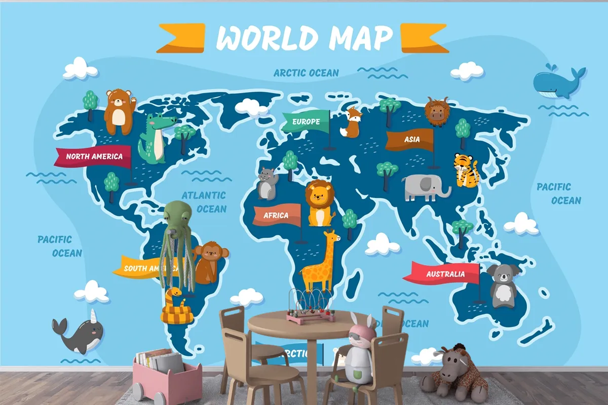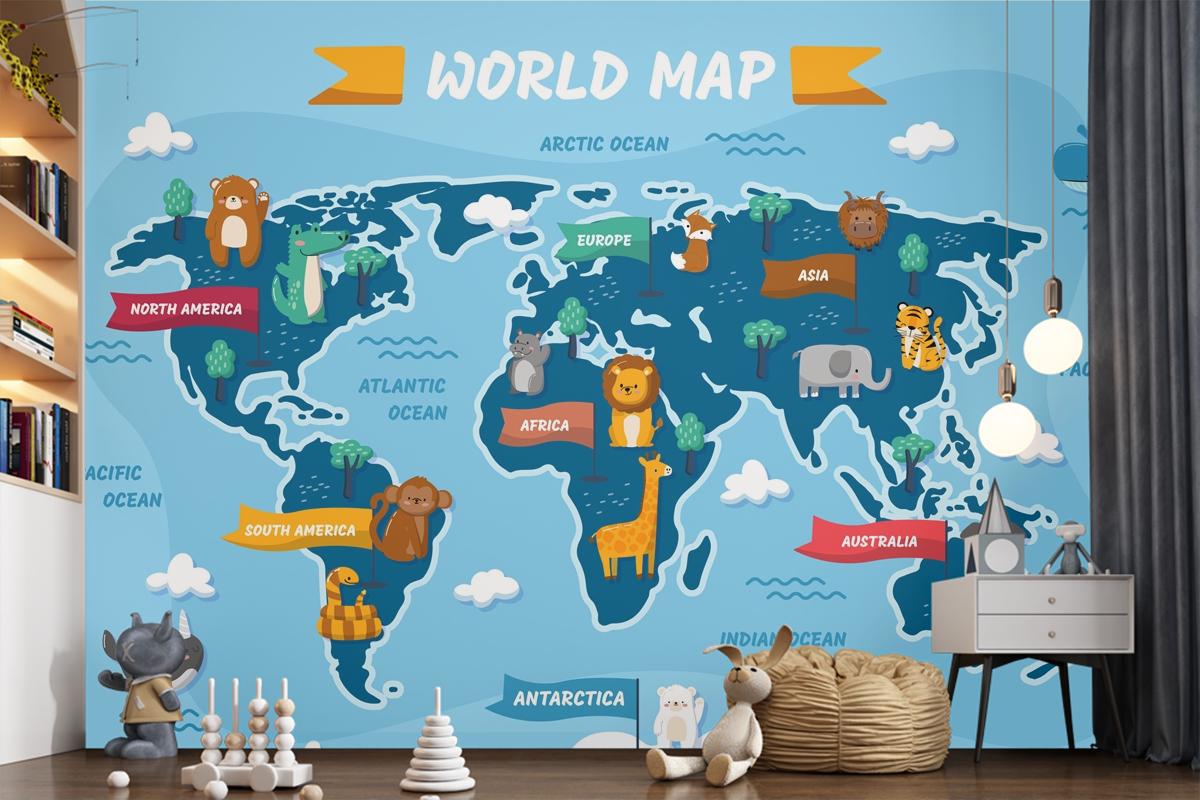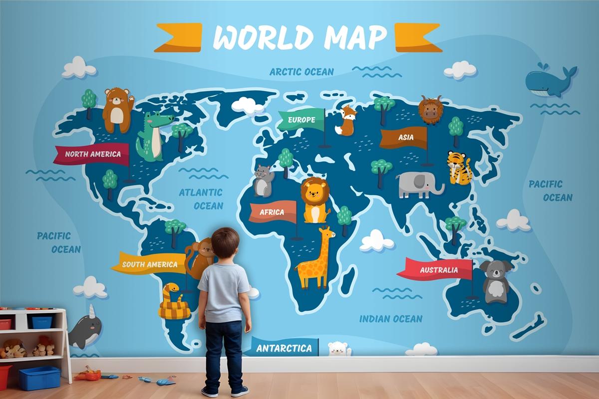 Elle Çizilmiş Çocuk Haritası Çocuk Odası Duvar Kağıdı